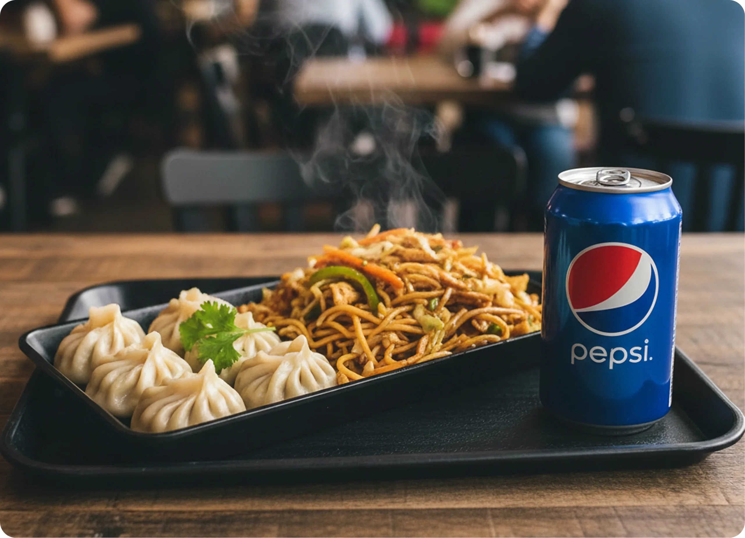 4 Pcs Momo + Chow Mein + Soda